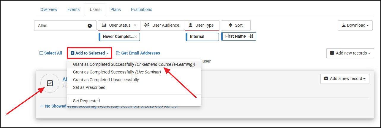 This article will explain how to record a completed successfully record for one or more Learners for a Course even though the Learner may have never attended or taken that Course as an Instructor Override.