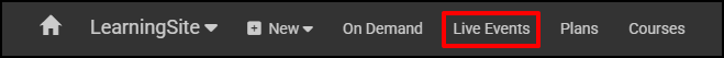 All Live Events can be found in LearningSite by selecting that name in the Main Navigation Bar at the top. If you want to see what's being offered, select that item.