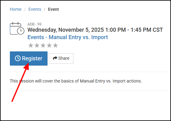Select an Event that interests you, check out the description, and then click the Register button.