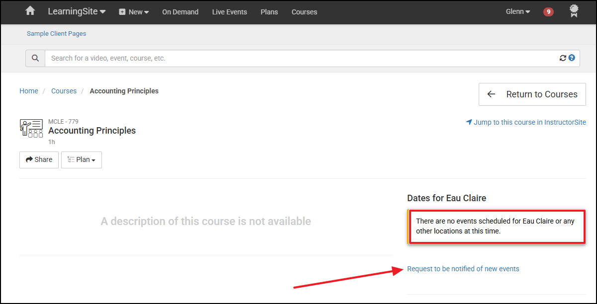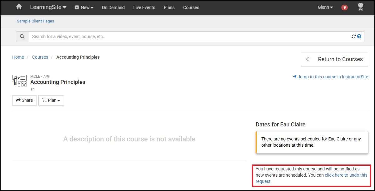 If you change your mind and don't want to be notified when this Course is scheduled you can click on the Course and then "Undo Request".