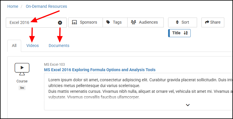 Find Courses, Events, Plans, On-Demand Content, Etc.