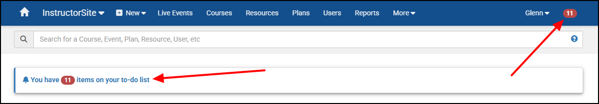 To Do items will appear here and to the far right edge of the Main Navigation Bar.