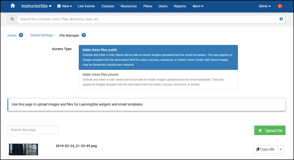 InstructorSite / Global Settings / File Manager