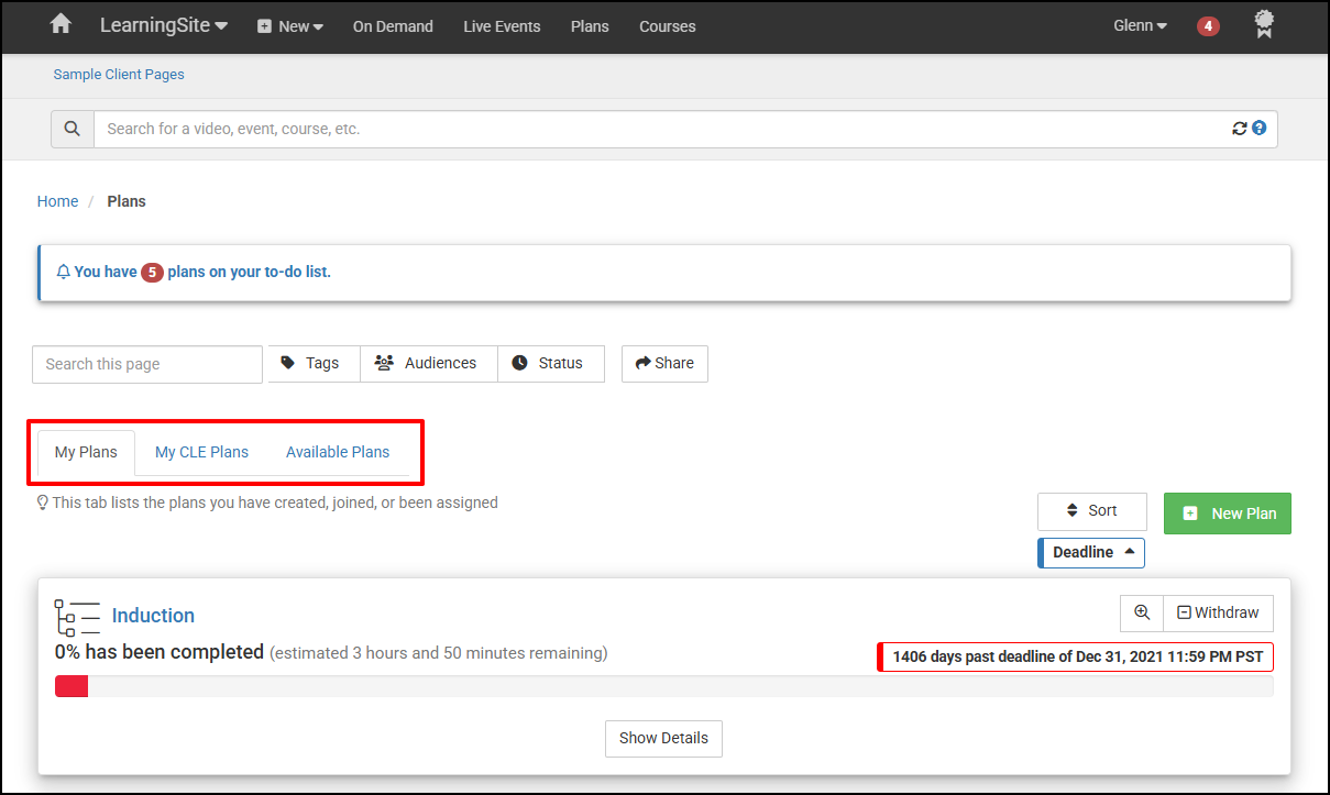 Plans can have start dates which exclude previous Courses you may have completed from being considered for that Plan.
