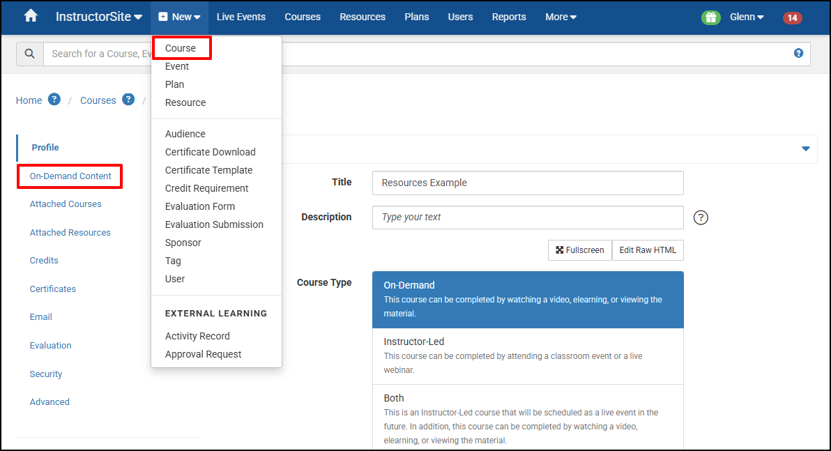 Suppose you want to add several Resources and make them part of someone's Learning Plan. Adding a Resource directly to a Plan is not supported, but you CAN add Courses that basically just ARE Resources to a Plan.