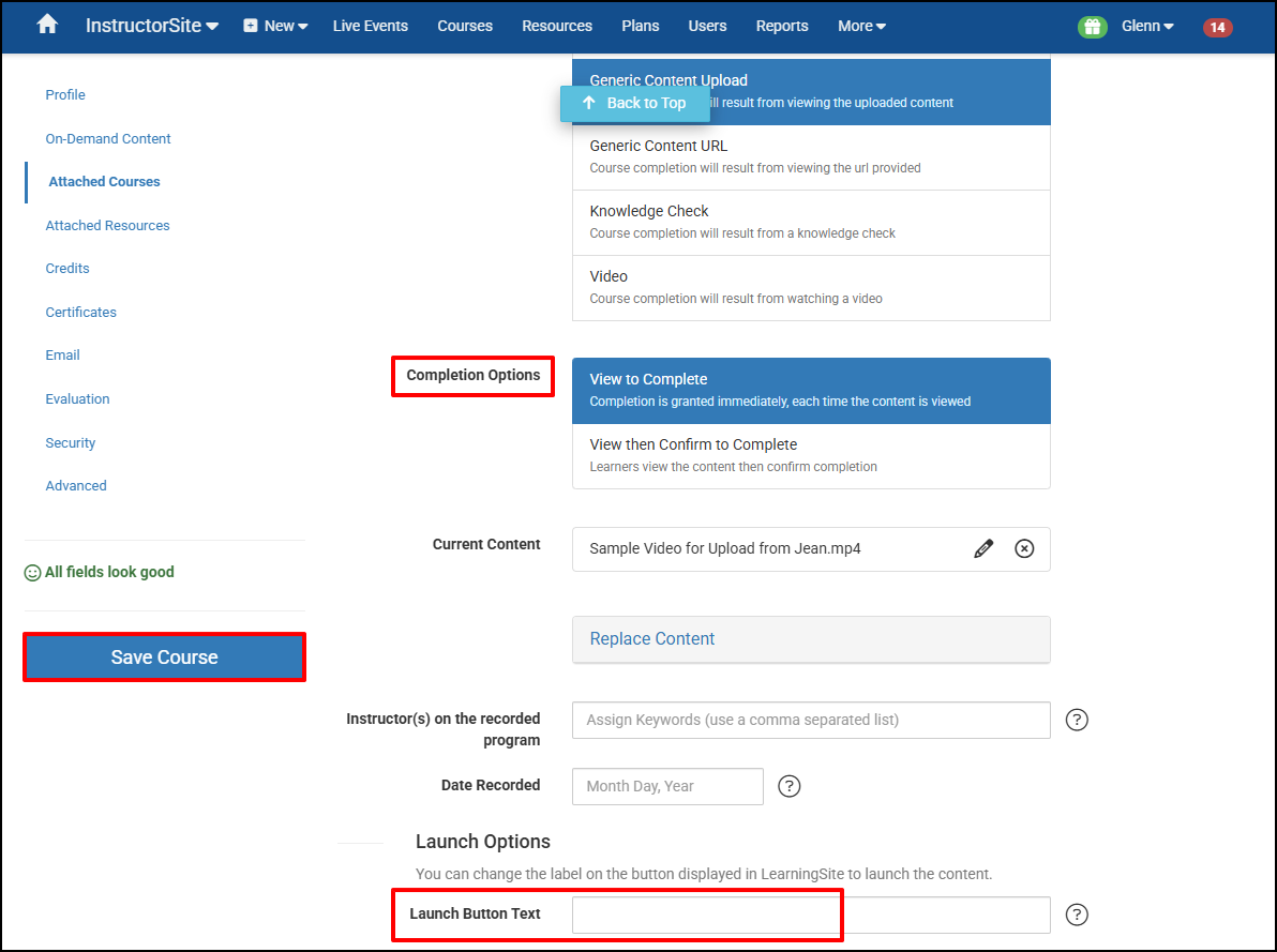 - Edit the Button Text to determine what label to use to launch/view the Resource.