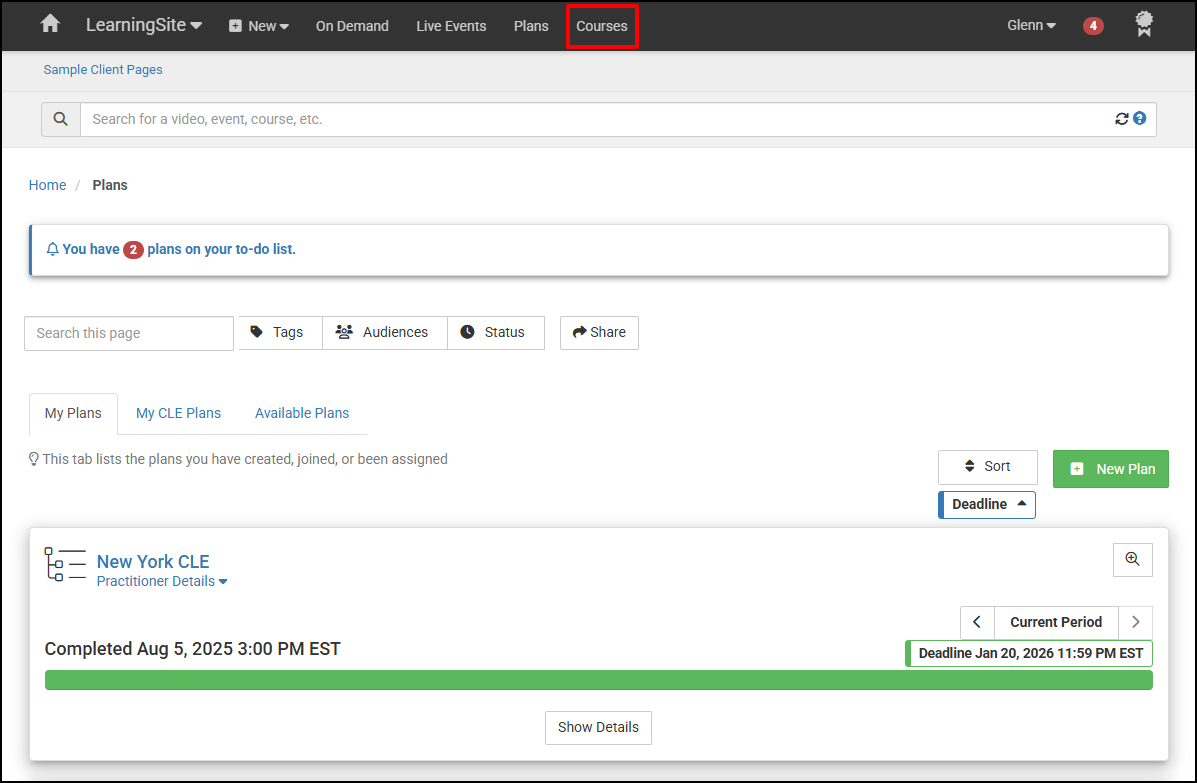 - In LearningSite, select Plans from the Main Navigation Bar.