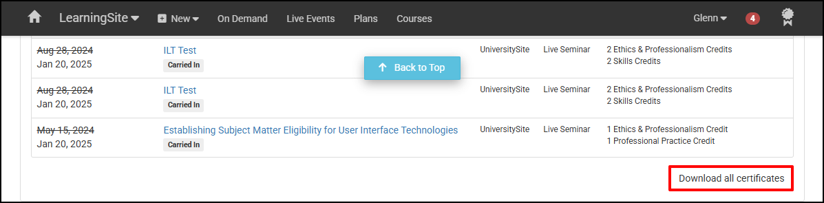- On the Plans page, scroll to the bottom of the Compliance Report section and select Download all certificates. The Certificates will download into a zip file.