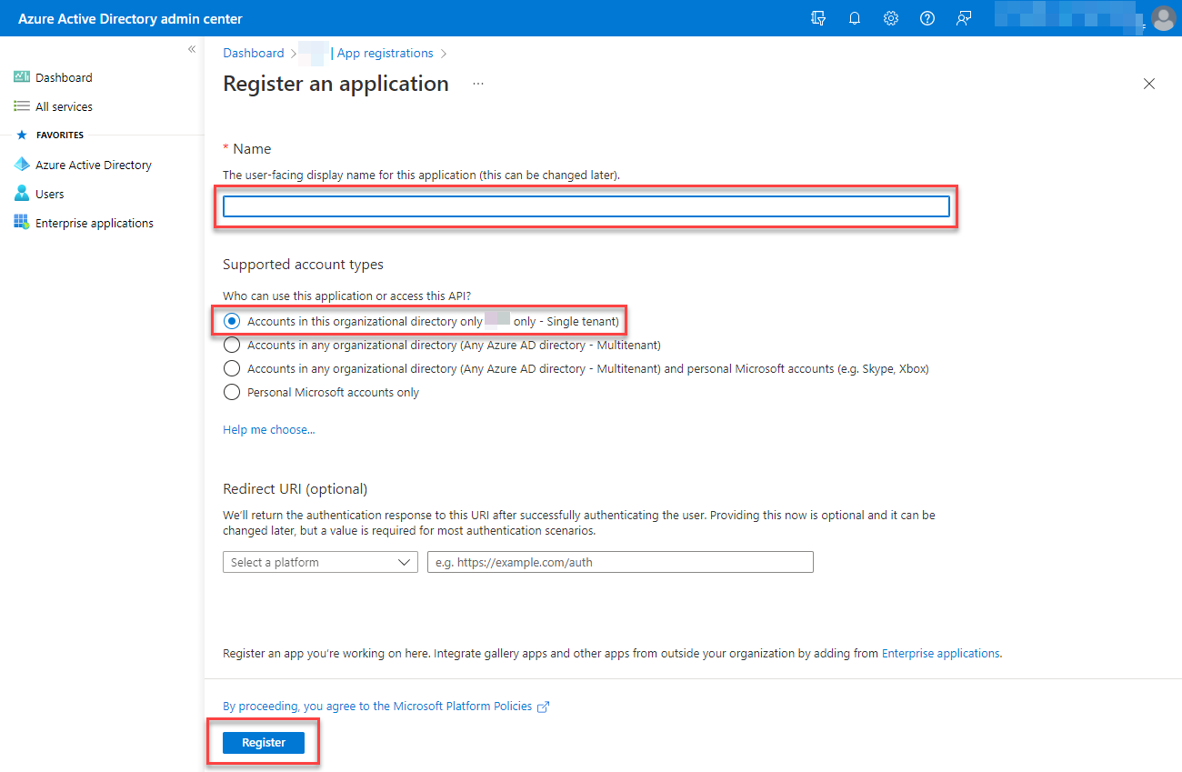 Add a Name such as UniversitySiteTeamsExtension or USiteTeams | choose Accounts in this organizational directory only and then click Register. Make note of the Name (Display Name) to use in the PowerShell script.