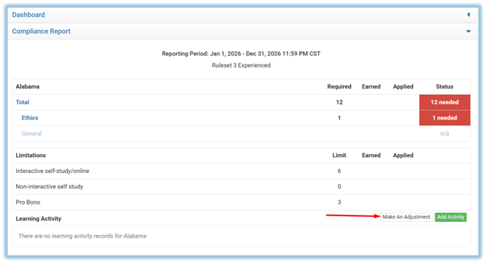 Before making any changes to an attorney’s credit requirement, please check with the attorney’s jurisdictional board to ensure that any adjustments made are correct.